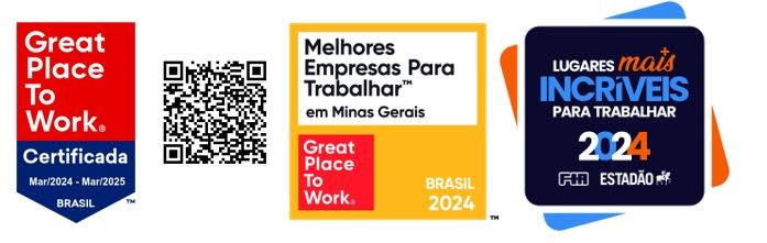 E em março de 2024 fomos chancelados pela segunda vez com o selo de empresa excelente de se trabalhar pela consultora global GPTW (Great Place To Work). Além disso rankiados em 13º lugar como melhor empresa de Minas Gerais em 2024.